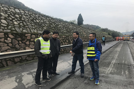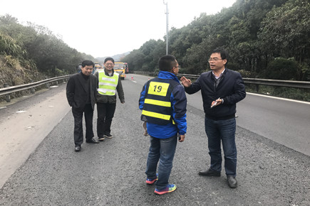 圖為市公路局副局長童桂正一行在現(xiàn)場指導(dǎo)