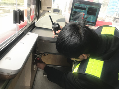 圖為工作人員自查崗?fù)?bào)警器 此外,工作人員對(duì)收費(fèi)區(qū)域內(nèi)的消防、交通、崗?fù)ぴO(shè)施設(shè)備,以及票證、通行費(fèi)等安全情況進(jìn)行了一次自查,確保安全用電,做好消防和防盜措施,并對(duì)當(dāng)班收費(fèi)員進(jìn)行現(xiàn)場(chǎng)稽查,檢查大家在當(dāng)班期間的崗?fù)きh(huán)境是否衛(wèi)生,臺(tái)面是否整齊,著裝是否統(tǒng)一,有無(wú)佩戴上崗證,儀表舉止是否規(guī)范,文明用語(yǔ)是否親切,以及抽屜大額現(xiàn)金有沒(méi)按規(guī)定放入保險(xiǎn)箱等。大家的合力檢查和相互配合,為春運(yùn)安全暢通、防寒防凍工作提供了強(qiáng)有力的保障。 陳瑩