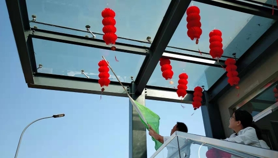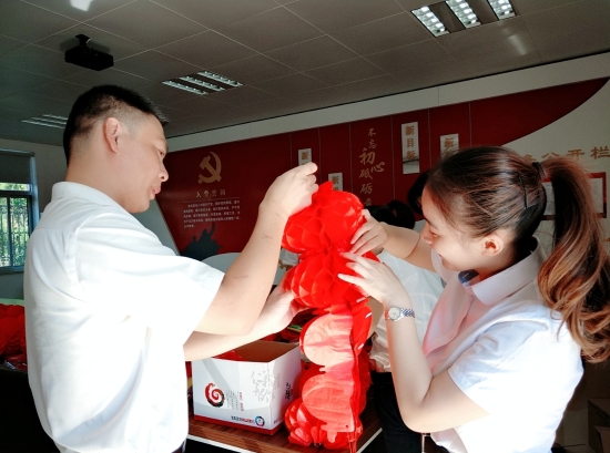 圖為工作人員一起布置收費(fèi)所 在慶祝祖國70周年生日的日子里,最火的顏色就是紅色。為了弘揚(yáng)中華民族傳統(tǒng)文化,溫嶺西收費(fèi)所后勤組早早購置了燈籠、彩旗、五星紅旗,寫好“慶祝祖國70周年華誕”大字等。黨員帶頭,團(tuán)員緊跟,一線收費(fèi)員紛紛參與,在收費(fèi)站大門口、辦公樓、食堂、宿舍等區(qū)域精心用五星紅旗、大紅燈籠、五顏六色的彩旗裝點,一抹抹艷麗的國旗紅,成為站點最靚麗的風(fēng)景。明亮的黃、鮮艷的紅,美麗窗口突然亮了起來,到處洋溢著濃濃的國慶氛圍,為過往司乘提供暢、潔、美的節(jié)日行車環(huán)境。 溫嶺西收費(fèi)所后勤組還精心策劃、精細(xì)編排,制作了具有特色、獨具創(chuàng)意的生日祝福“小視頻”,祝祖國生日快樂! 通過開展弘揚(yáng)愛國精神,喜迎國慶活動,溫嶺西收費(fèi)所全所工作人員更加不忘初心,砥礪前行,共同慶祝祖國70周年華誕。 鄭霞霞