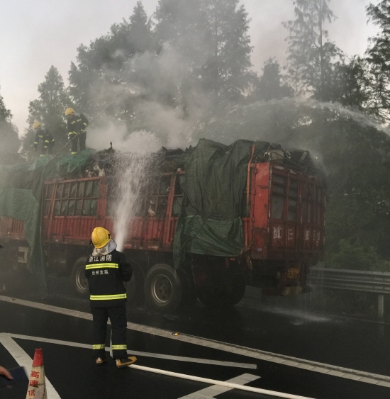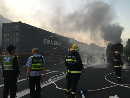 高速貨車(chē)起火 多部門(mén)應(yīng)急聯(lián)動(dòng)除隱患 9月14日17:52,甬臺(tái)溫高速黃土嶺隧道出口寧向1638米處,一輛滿載廢舊電器物品的貨車(chē)在高速上突然起火。