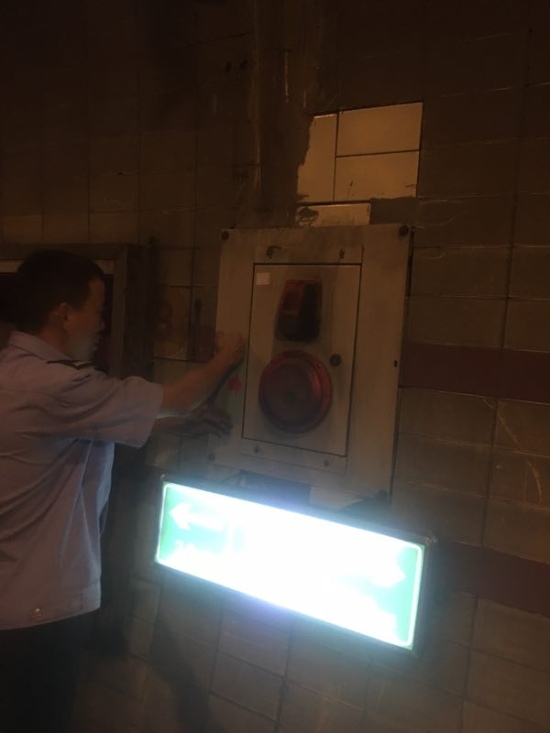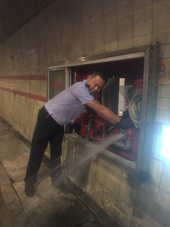 圖為張貼火災(zāi)報(bào)警提示標(biāo)語(yǔ) 此次隧道清洗工作主要針對(duì)隧道內(nèi)的機(jī)電設(shè)施維修與保養(yǎng),清潔監(jiān)控和照明燈,修復(fù)故障攝像機(jī);檢修消防設(shè)施,如火災(zāi)報(bào)警采用點(diǎn)火測(cè)試、手動(dòng)報(bào)警、緊急廣播和電話測(cè)試,以及檢查消防箱;隧道內(nèi)指示標(biāo)記檢查,如人通、汽通檢查保養(yǎng),隧道風(fēng)機(jī)檢測(cè),貼安全提示標(biāo)志,修復(fù)提示燈等。 隊(duì)員們放棄休假,加班加點(diǎn),借著隧道清洗一類施工的有利條件,把隧道內(nèi)需報(bào)修的各種設(shè)備進(jìn)行維修和保養(yǎng),保障了隧道內(nèi)機(jī)電、消防設(shè)施的正常運(yùn)行,排除安全隱患,為即將到來(lái)的中秋小長(zhǎng)假提供明亮、安全的隧道行車(chē)環(huán)境。 陳智慧