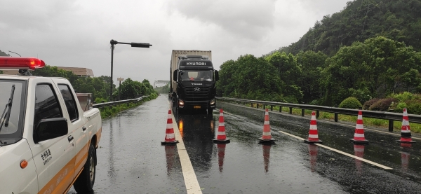 防御臺風“黑格比”24小時 今年第4號臺風“黑格比”于8月4日3點30分前后在溫州樂清沿海登陸。8月3日上午,接臺風預警通知,大溪嶺隧道所立即落實防臺應急措施,準備抗臺物資、備足油料,檢查車況、發電機組、山上堅井、隧道內設備設施、隧道高邊坡,以及擋墻等,清除山上水溝雜物、放下高桿燈等等。