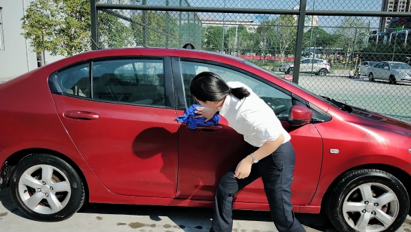 溫嶺西支部書記周超帶領(lǐng)黨員服務(wù)群眾 當(dāng)天上午,活動一開始,前來洗車的車輛絡(luò)繹不絕。在支部書記周超的帶領(lǐng)下,五名黨員便開始分工合作。兩名男同志負責(zé)沖水、上泡沫、擦洗、再沖水,兩名女同志負責(zé)擦干和吸塵器清掃內(nèi)室,還有一名男同志負責(zé)開車挪車,需要清洗的車輛一輛接著一輛,黨員同志們顧不得擦干身上的被水濺濕了的衣服,忙得不亦樂乎。看著被洗得一塵不染的車,大家都不約而同地會心一笑。