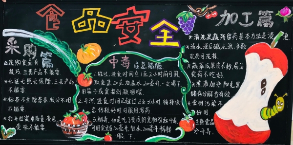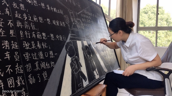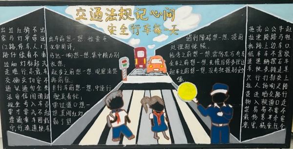 活動(dòng)前期,臨海南收費(fèi)所臨時(shí)組建五人板報(bào)小分隊(duì),充分利用空余時(shí)間搜集有關(guān)安全教育資料,對(duì)內(nèi)容、畫面進(jìn)行認(rèn)真整理、篩選。最終決定三個(gè)板塊,以提高安全教育為目的,以不同風(fēng)格主題來呈現(xiàn),從多方面、多角度設(shè)計(jì)與繪制,達(dá)到了更好的安全教育宣傳效果。 活動(dòng)開展后,參與者們分配好各自的任務(wù)后,出黑板報(bào)的工作便熱火朝天地展開了。大家利用自身的特長,通過粉筆字、繪畫等藝術(shù)形式,對(duì)黑板報(bào)進(jìn)行了精心的設(shè)計(jì),主題鮮明,內(nèi)容充實(shí),圖文并茂,趣味性強(qiáng),全方位、多角度地宣傳了《消防安全》、《食品安全》、《交通安全》三大主題。其中在交通安全宣傳方面,如何使交通安全內(nèi)容,更加直觀形象、簡(jiǎn)單易懂的、眾人易于接受呢?大家通過反復(fù)嘗試,決定打破傳統(tǒng)模式,避免枯燥說教,把交通宣傳教育知識(shí)融入到兒歌中,通過朗朗上口的兒歌形式,傳達(dá)一些基本的交通規(guī)則,幫助大家養(yǎng)成自覺遵守交通規(guī)則的意識(shí),提高自我安全防護(hù)能力。最后經(jīng)過大家日夜趕工,黑板報(bào)的工作在大家的共同努力下順利完成。