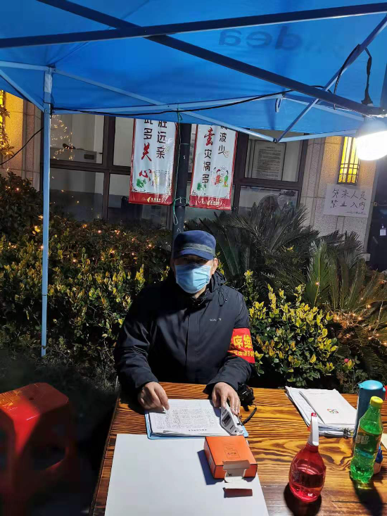 黨員丁聰,積極參與泰和苑小區的卡點測溫志愿服務;