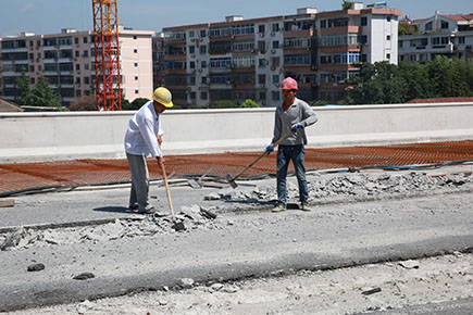 鐘志偉是8#立交項(xiàng)目部的現(xiàn)場(chǎng)管理人員。“目前正在施工的是8#立交主線橋的橋面鋪裝層,這個(gè)班組是月初進(jìn)場(chǎng),按照預(yù)計(jì)工期,月底前必須完成所有橋面鋪裝。”鐘志偉說(shuō),時(shí)間緊、任務(wù)重,三伏天也要連軸轉(zhuǎn)。